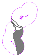 Figure 1 (Refer to Images 1-3): Summary of progressive changes to avoid direct impacts to Tiehm’s buckwheat subpopulations (solid purple areas) and minimise disturbance within the designated critical habitat (dashed purple line). Project related surface disturbance is shown in solid grey areas. The critical habitat extends 500m in all directions from the sub-populations and covers 368 hectares (910 acres).