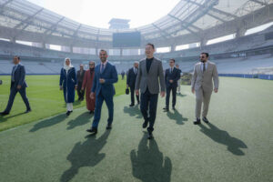His Highness was briefed on the stadium's AI-enabled facial recognition for fan entry and exit, on-pitch monitoring, Huawei's display technologies, modern stadium technology, and AI-driven data management.