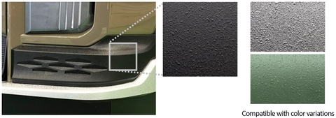 METEOCOAT is characterized by a rugged texture in which scratches do not stand out. This makes it suitable for offroad vehicles, especially those driven a lot on unpaved roads. METEOCOAT’s unique texture with surface protrusions has been achieved by adjusting the viscosity of paint. It also comes with different sizes of protrusions and color variations.