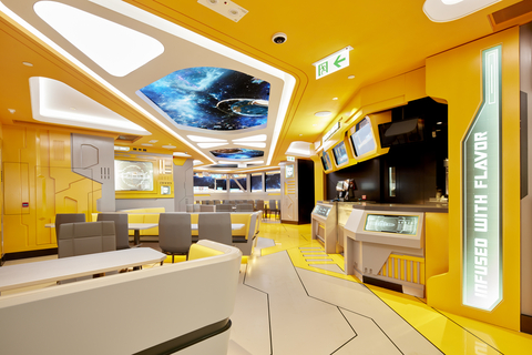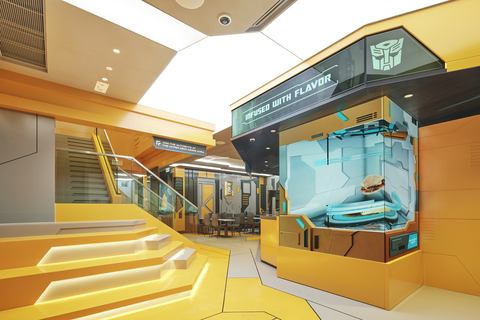 As customers ascend the staircase to the Upper Deck, they enter the control room of the spaceship, giving them the feeling of being on a journey through space. Customized LED screens on the walls and ceiling play “live” footage of outer space, creating a captivating and visually impactful immersive experience for guests. Transformers characters will make appearances and interact to further enhance the experience for diners. There are also hidden surprises to discover throughout the restaurant for a dining experience that is truly More Than Meets the Eye.